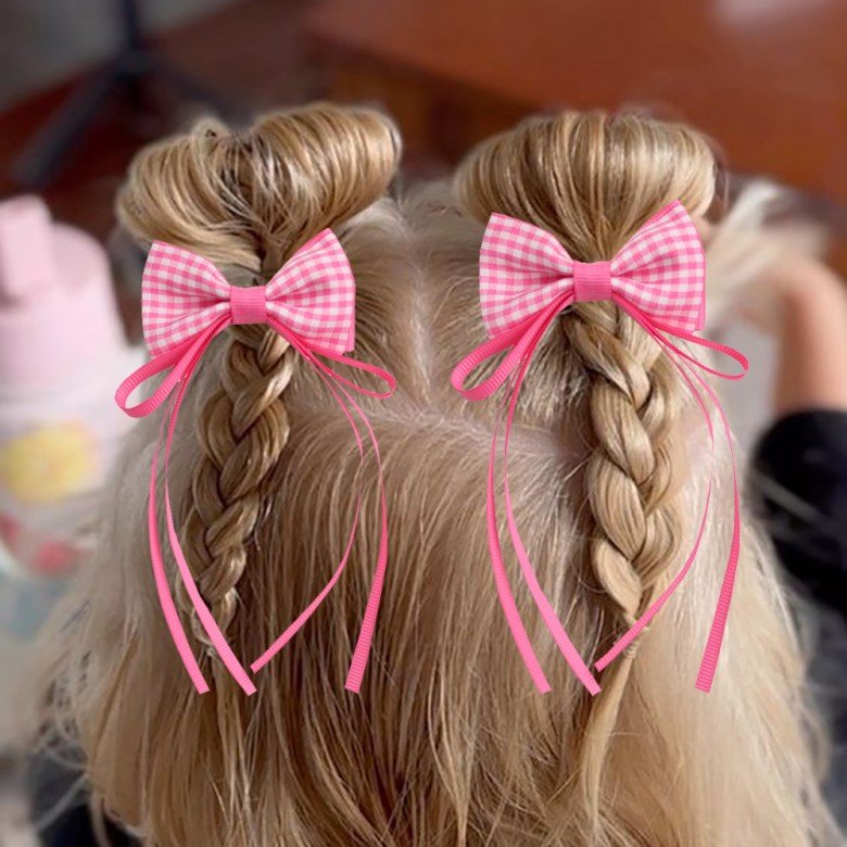 2pcs/pair Back to School Gingham Hair Bow Clips for Kids Plaid Long Tail Sailor Hair Bow Clip Girls Check Long Streamer Bows