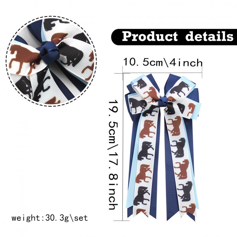 2pcs/pair Equestrian Hair Bows Horse Show Bows Sport Long Streamer Hair Clip