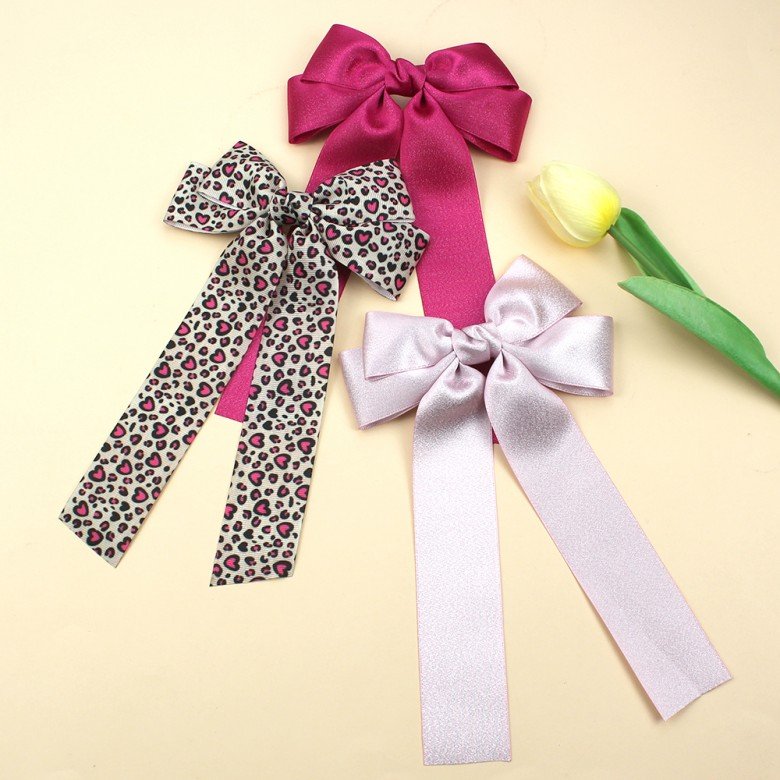 3pcs/set Women Gorgeous Leopard Long Streamer Hair Bows Clips Glitter Satin Ribbon Hair Clip Girls Hair Bow Accessories