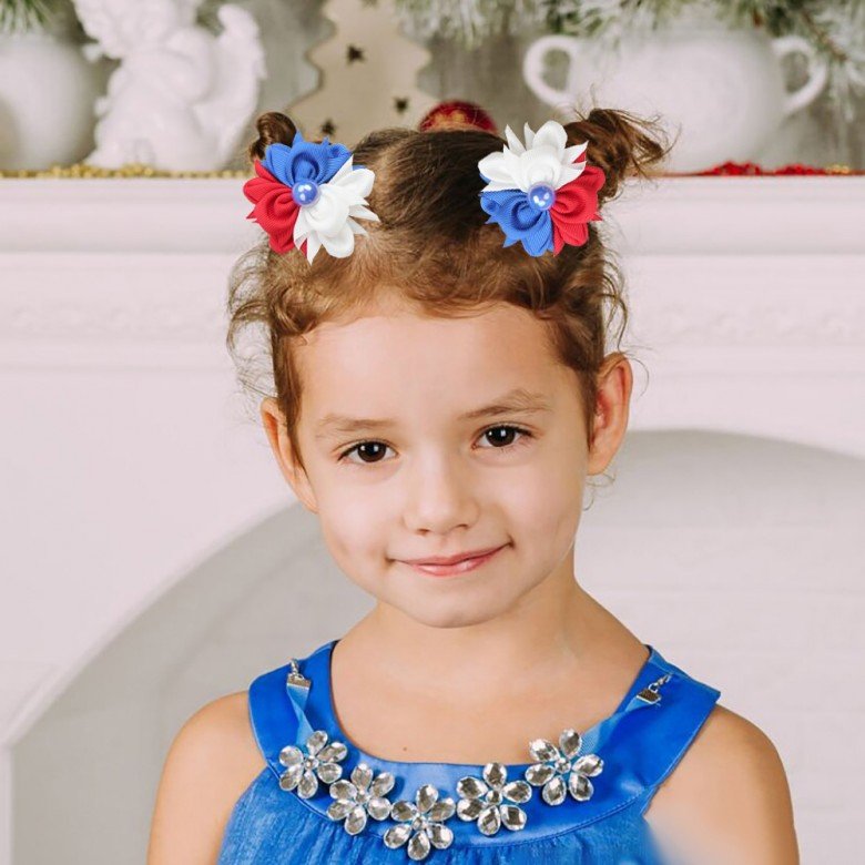 Best Quality 4th of July Patriotic Kanzashi Spring Flower Hair Bow Clips Independence Day Hair Clips Kids Rainbow Accessories