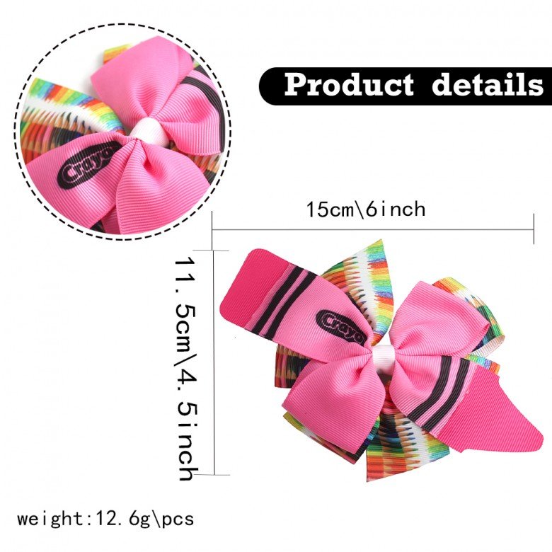 Back to School Colorful Crayon Hair Bow Clips for Girls School Pencil Hair Clips Kids School ABC Hair Accessories