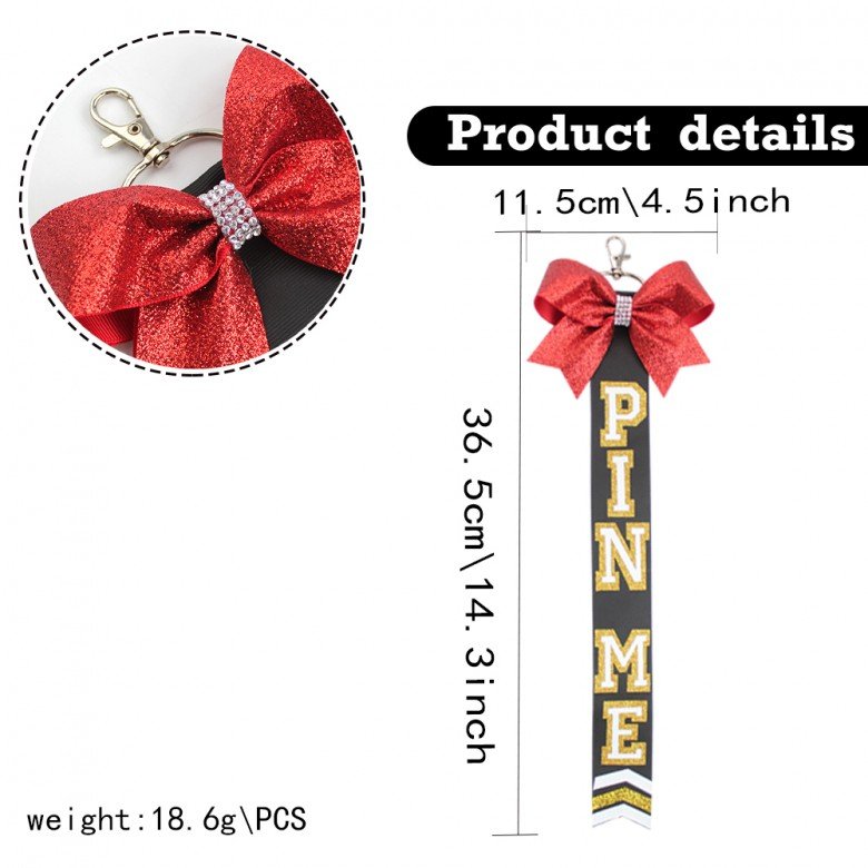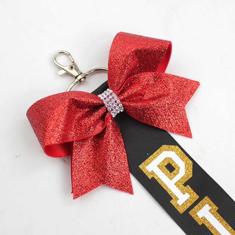Sport Glitter Pin Me Keychain with Rhinestone Cheer Glitter Hair Bow Keyfob Colorful Glitter Bag Decoration