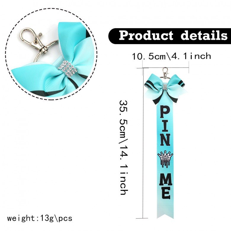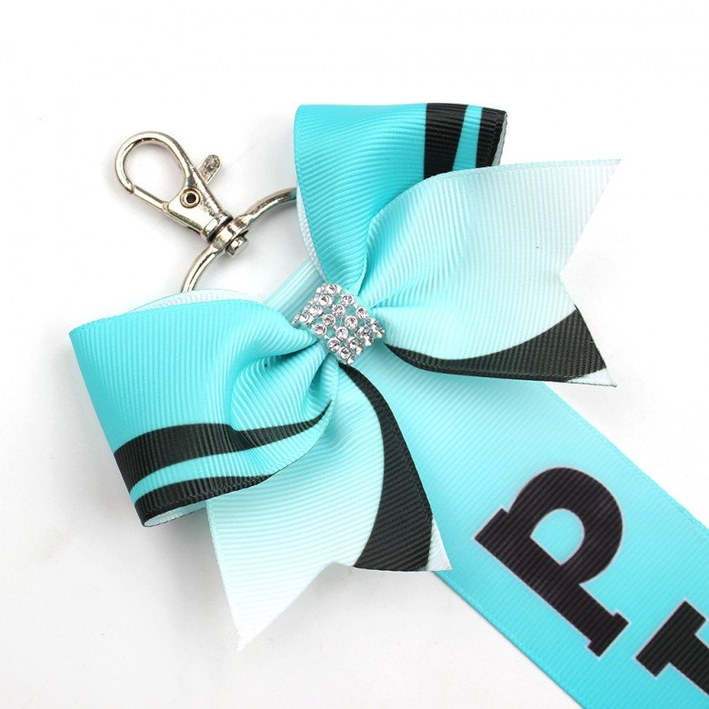 Sport Pin Me Grosgrain Ribbon Hair Bow Keychain Rhinestone Cheer Keyfob Colorful Crown Bag Decoration