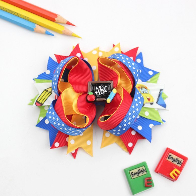 4.5'' School Hair Bow Go Back to School Stacked Boutique Crayon Hair Bow