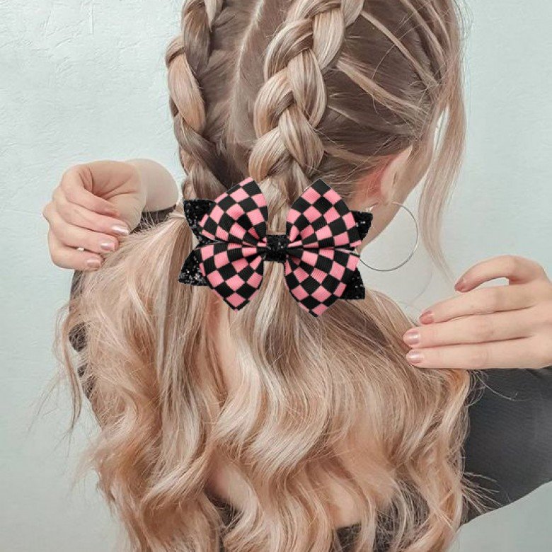 The 3.5'' Checkered Flag Racing Glitter Hair Bows is perfect for toddlers,little,or big girls.
