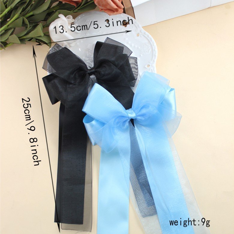 Beautiful Organza Long Tail Sailor Bows Mesh Long Streamer Bows for Girls Sweet Shiner Chiffon Bow Kids Hair Accessories