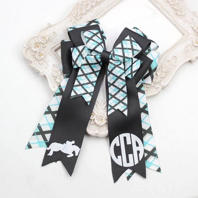 Equestrian Show Bows Monogrammed Equestrian Horse Show Competition Bows Clips Plaid Equestrian Horse Show Bows for Girls