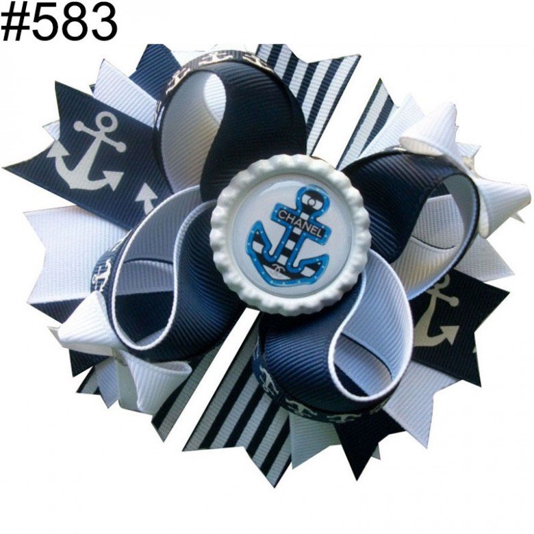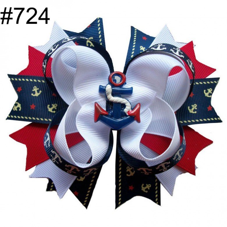 Tags: Nautical Navy Blue Anchor Hair Bow Clip, 20260404, cheer bows