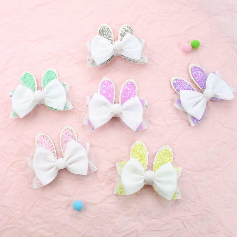 The Spring Easter Festival Rabbit Ear Glitter Hair Clip is perfect for toddlers,little,or big girls.