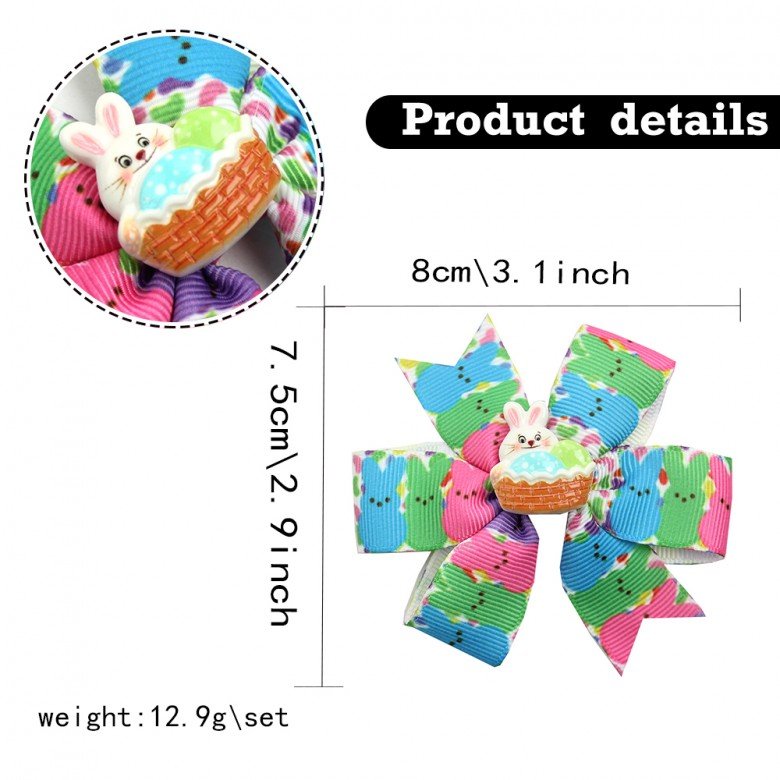 Easter Pinwheel Bunny Hair Bow Clips Colorful Egg Bow Chick Peep Hair Bow Clips Kids Festival Hair Accessories