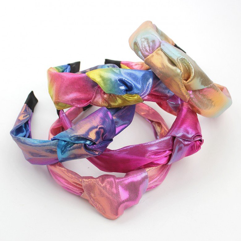 Girls Mermaid Glitter Daily Birthday Knot Head Wraps Colorful Glossy Holographic Knot Headband for Girls Hair Accessories