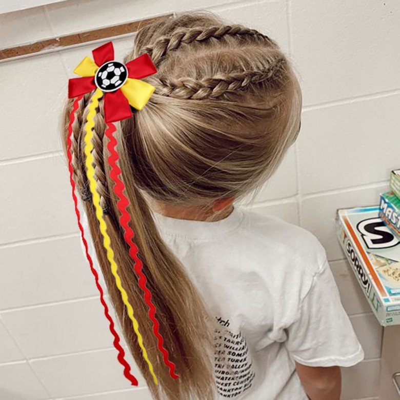Tags: Girls Sport Soccer Themed Hair Bow Clips with Long Wavy tails for Game Day Football Hair Clips with Curled Streamers, 20260326, ponytail streamer bows