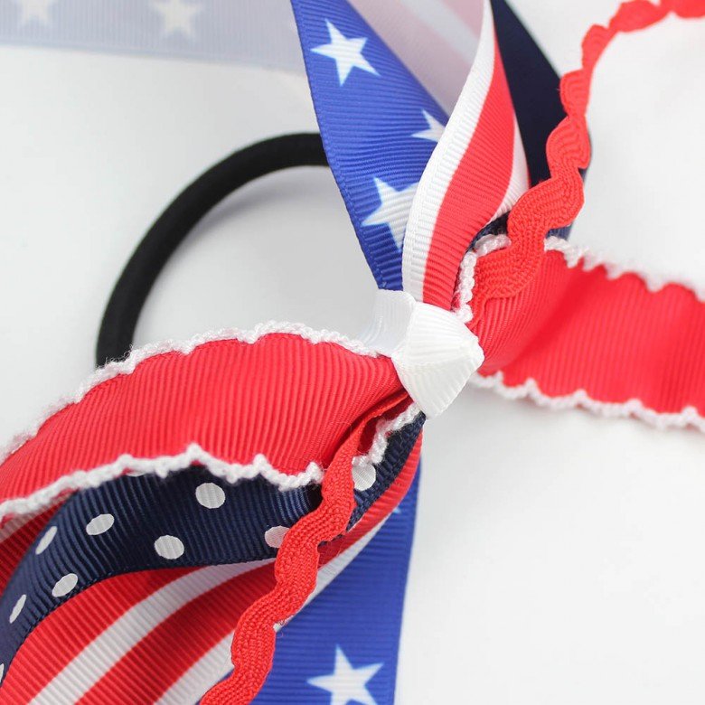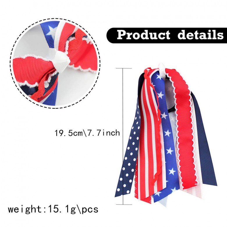 Best Quality 4th of July Patriotic Long Streamer Ponytail Holder for Girls Independence Day Hair Clips Kids Hair Accessories
