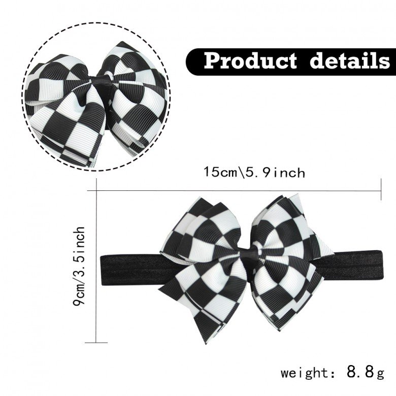 Tags: Racing Team Hair Bows Checkered Flag Hand Bows for Girls Racing Headband Checkered Wrist Corsage Kids Outfit Accessories, 20250417,
