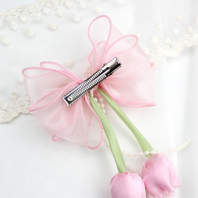 Tags: Girls Tulip Flower Mesh Long Sailor Hair Bows with Pearl Spring Organza Bows for Girls Kids Hair Accessories, 20260325, ruffle/moonstitch ribbon bows