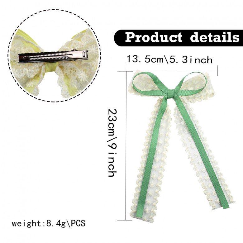 Girls Princess Lace Long Tail Sailor Bows Solid Color Lace Tassel Hair Clips for Girls Party Long Streamer Hair Bow Accessories