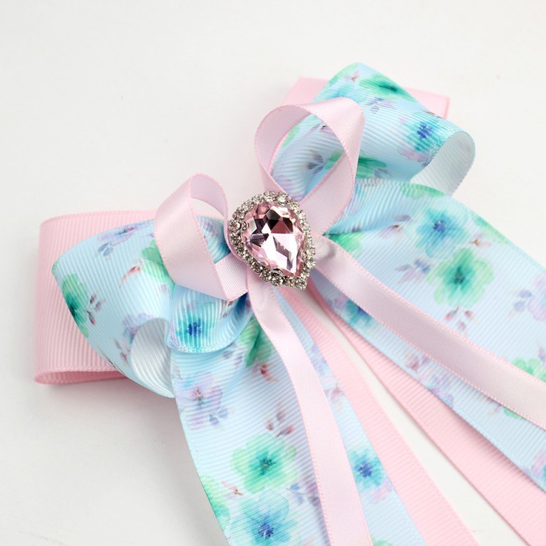 Tags: Spring Summer Floral Flower Long Tail Sailor Hair Bow Clip Pastel Floral Long Tail Hair Bows with Rhinestone, 20260404, cheer bows