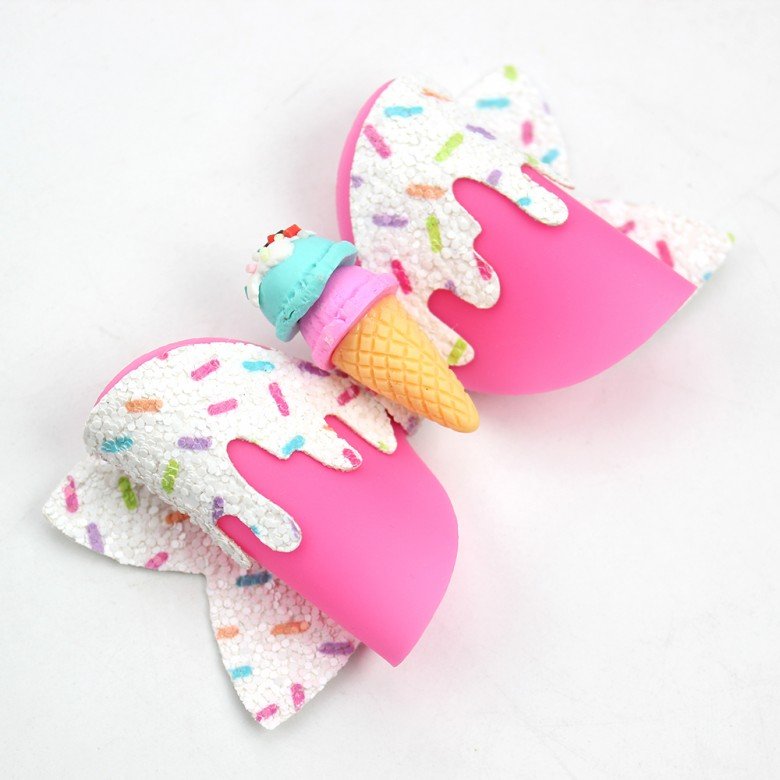 Summer Candy Glitter Hair Clips with Ice Cream Leather Hair Bows