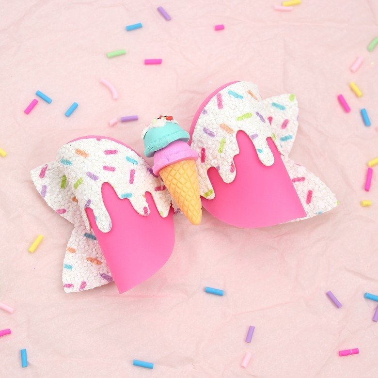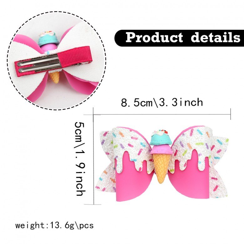 The Summer Candy Glitter Hair Clips with Ice Cream Leather Hair Bows is perfect for toddlers,little,or big girls.