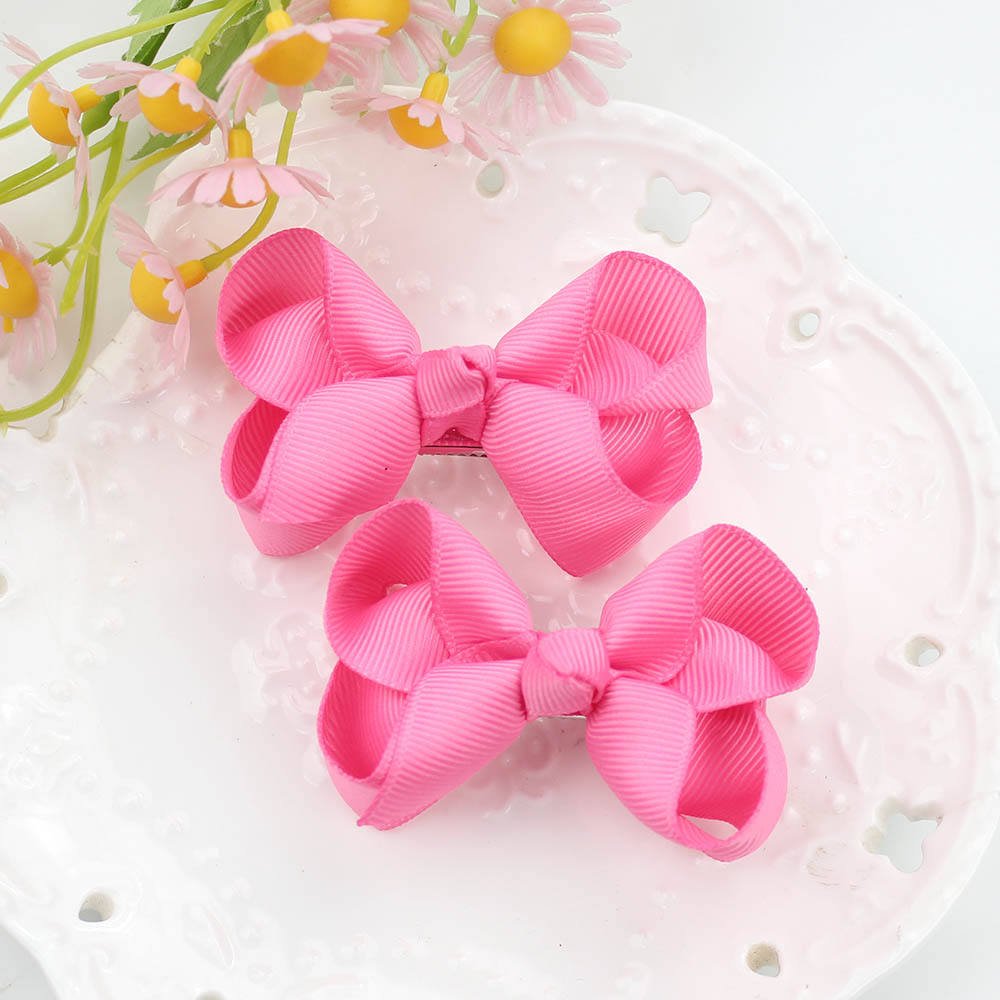 2pcs/pair Baby Toddler Solid Color Grosgrain Ribbon Hair Bow Clip Baby Pig Tail Bow Clip Barrettes Piggy Bow Accessories