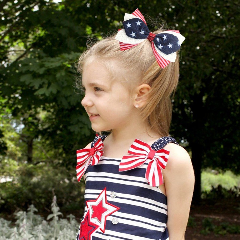 The 4th of July Patriotic Ribbon Glitter Hair Bow Clips is perfect for toddlers,little,or big girls.