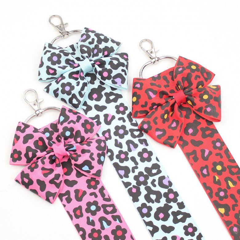 Leopard Hair Bow Holder for Girls zebra Strip Bows Keychain Children Bow Holder