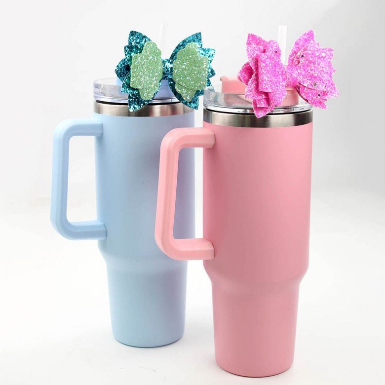 4''Stanley Straw Bow Topper Tumbler Glitter Bow for Stanley Cup Decor Decoration Accessories Glitter Bows for Girls