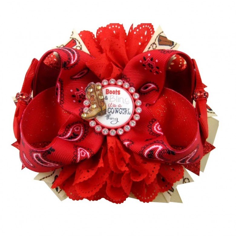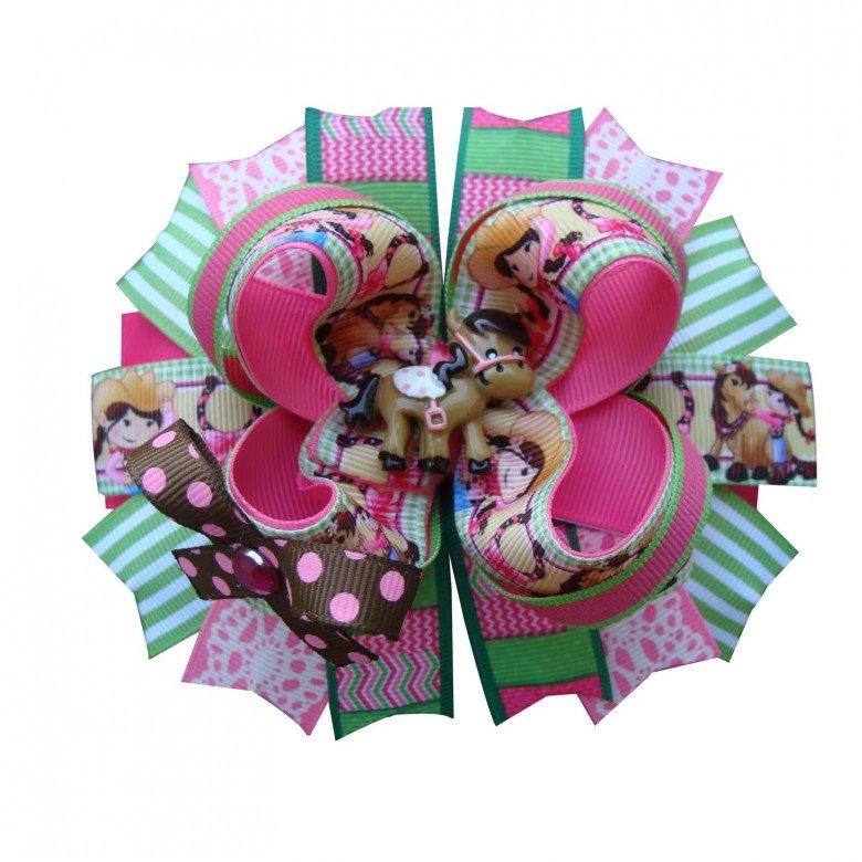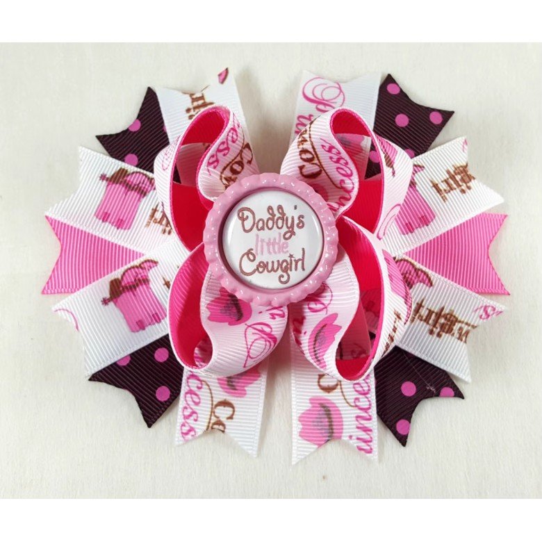 The Cowgirl Hair Bows Brown and pink Ribbon Western Hair Bow     is perfect for toddlers,little,or big girls.