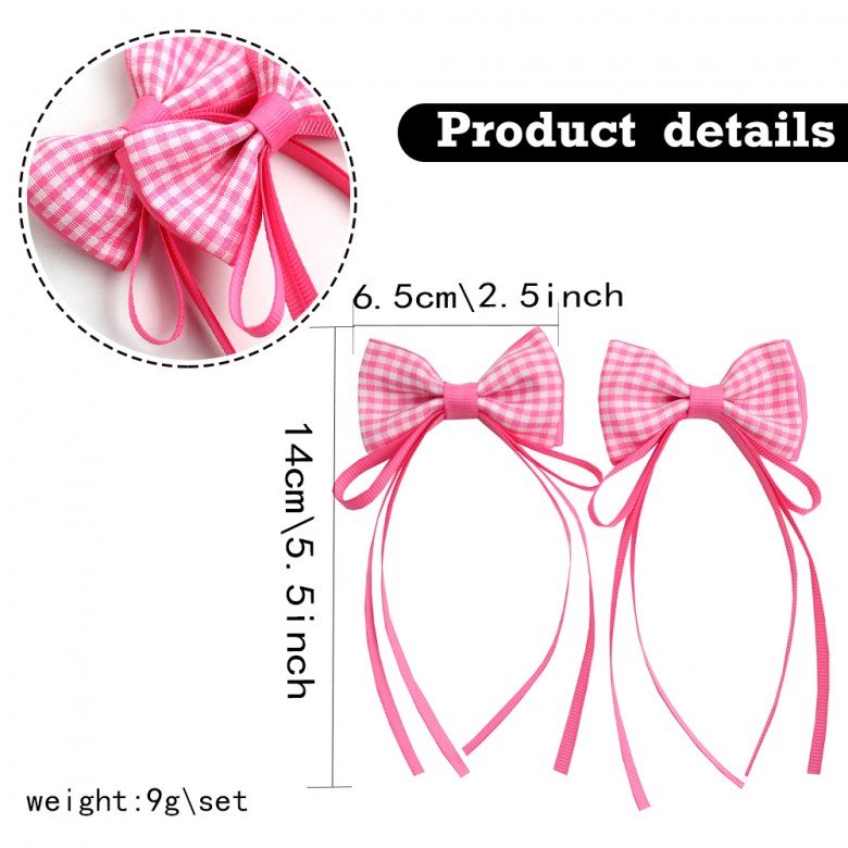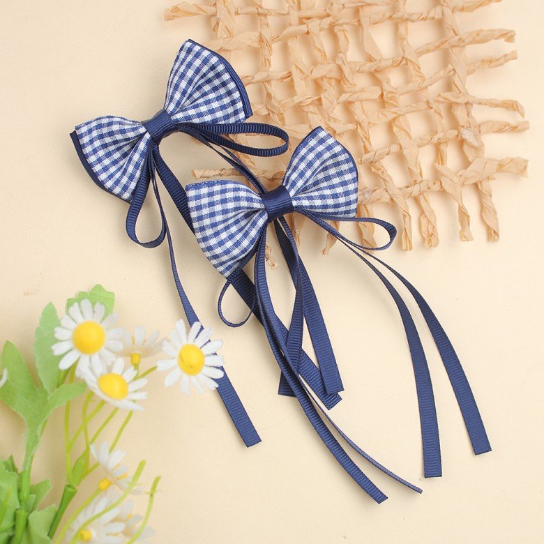 2pcs/pair Back to School Gingham Hair Bow Clips for Kids Plaid Long Tail Sailor Hair Bow Clip Girls Check Long Streamer Bows