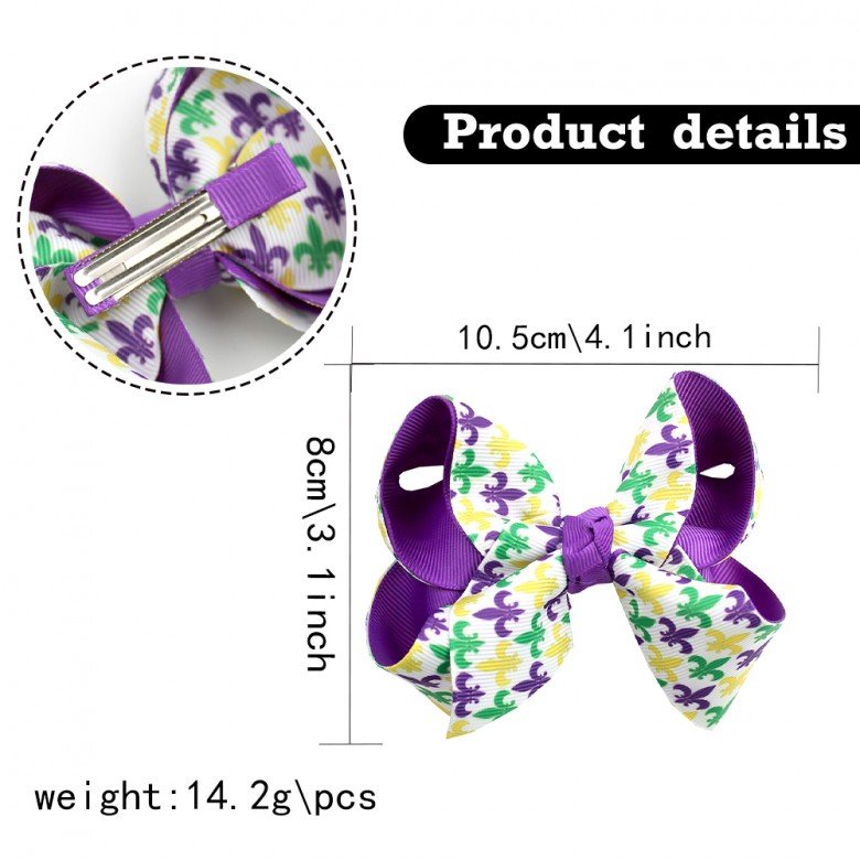 4.1inch Mardi Gras Girls Hair Clip