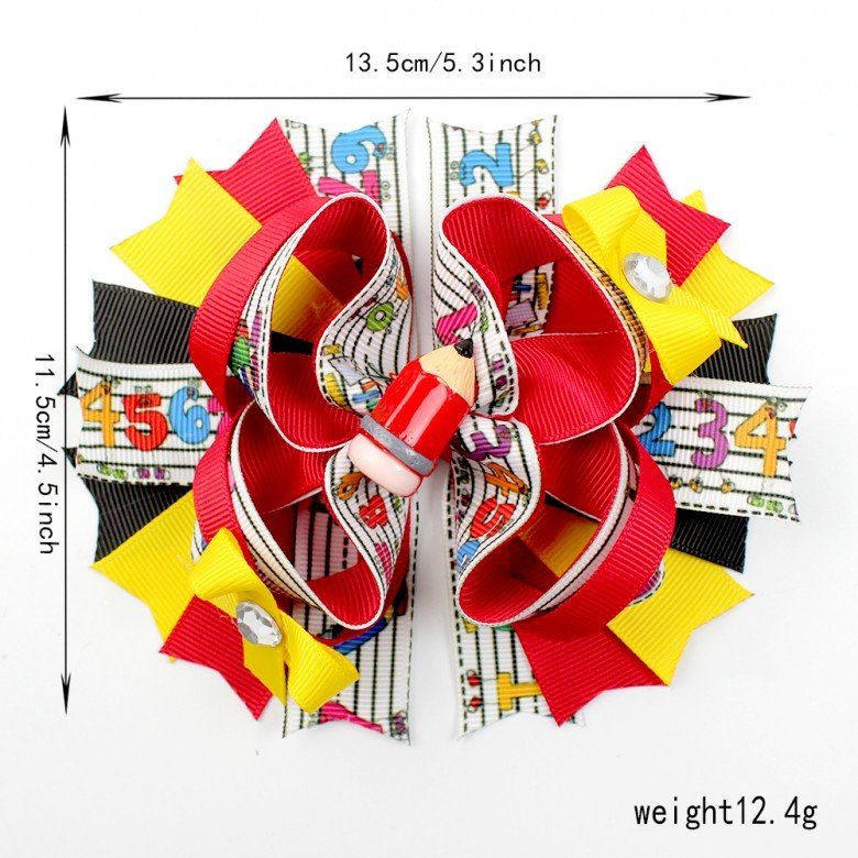 5.3' Back to School Hair Bow Clip School Uniform Stacked Crayon Hair Bow Pencil Kids School Hair Accessories