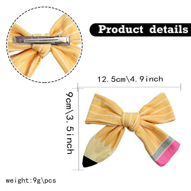 Back to School Cotton Fabric Hair Bow for Girls School Colorful Pencil Hair Clips Kids Hair Accessories