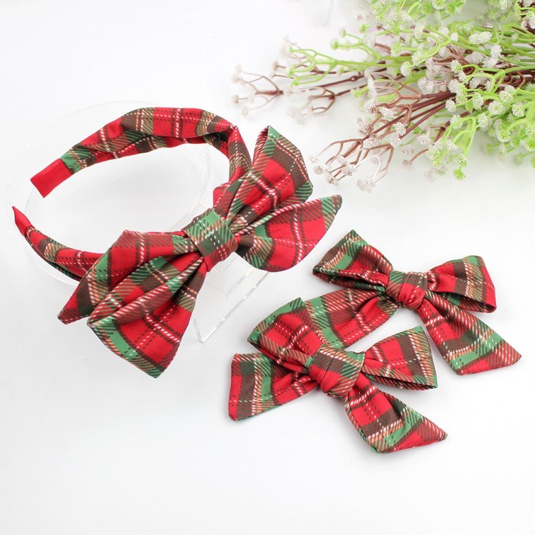 Winter Christmas Handmade Tartan Plaid Hair Bow and Headband Set for Girls School Uniform Bows for Kids Hair Accessories