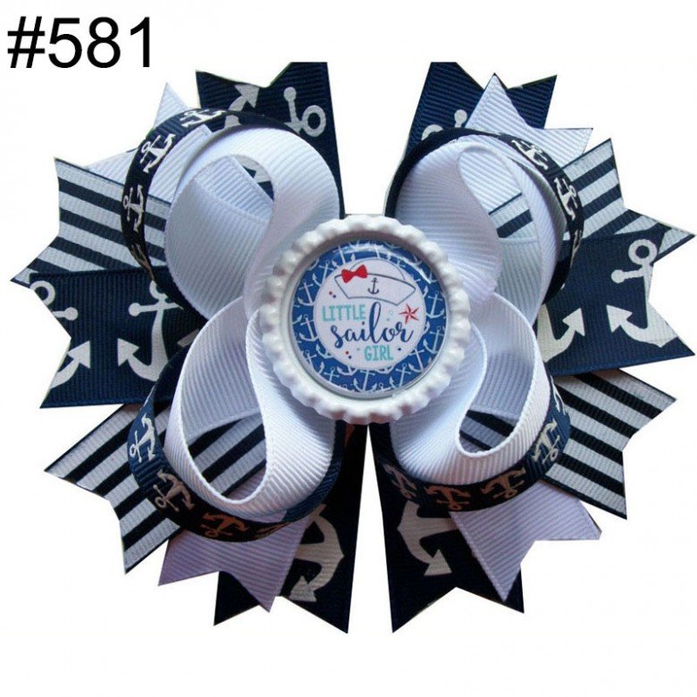 Tags: Nautical Navy Blue Anchor Hair Bow Clip, 20260404, cheer bows