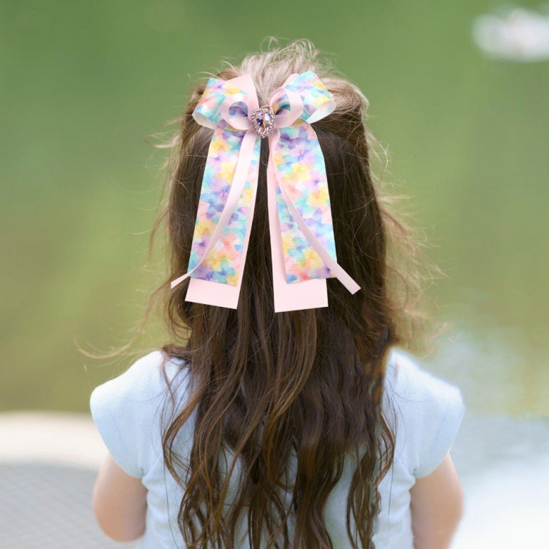 Tags: Spring Summer Floral Flower Long Tail Sailor Hair Bow Clip Pastel Floral Long Tail Hair Bows with Rhinestone, 20260404, cheer bows