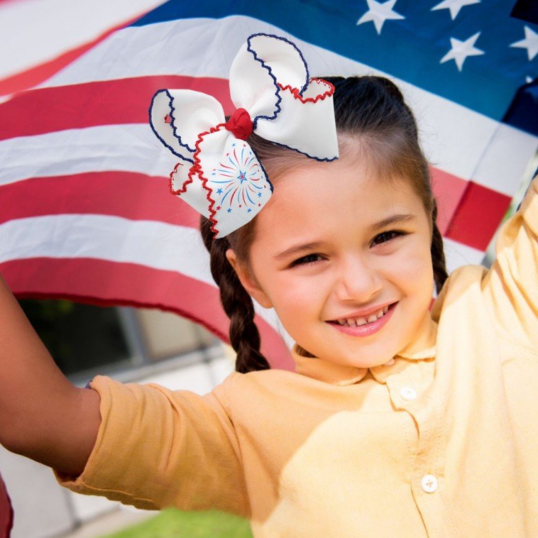 The 4th of July Moonstitch Hair Bow Clip is perfect for toddlers,little,or big girls.