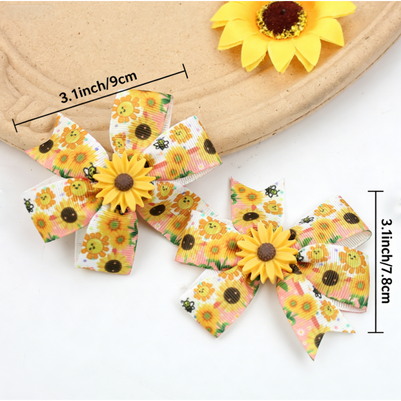 3.1inch Spring Summer Sunflower Hair Bows Girls Toddler Cute Yellow Blue Daisy Flower Hair Clip Kids Boutique Hair Accessories